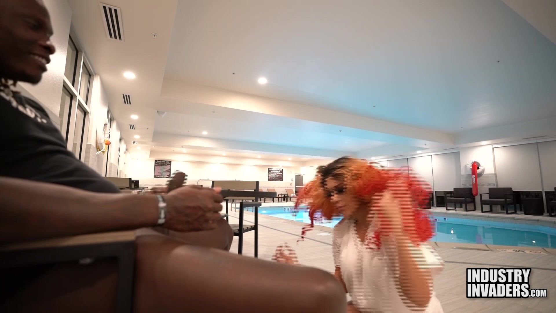 Bad Ass light skin Ms.Red X gets fucked at the public indoor pool